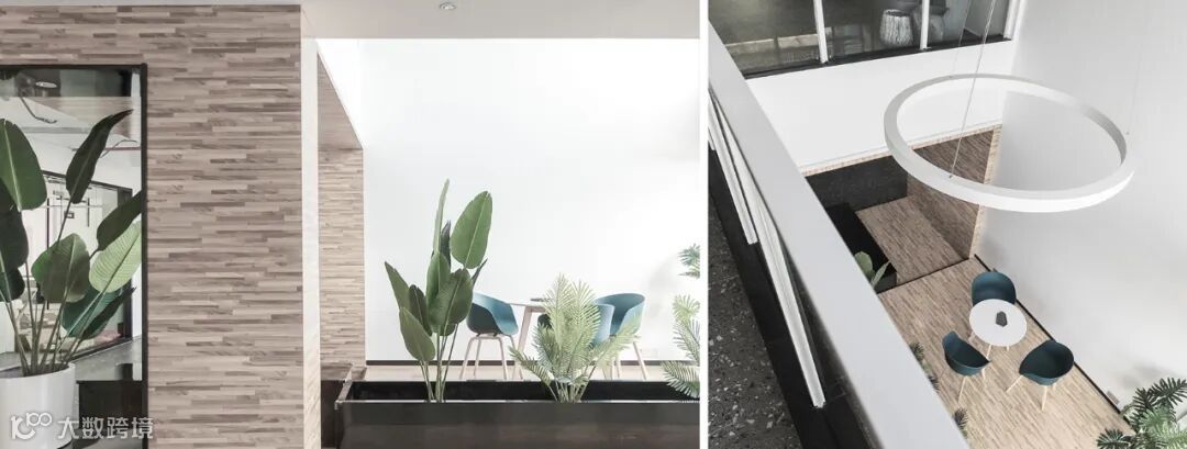 设计师还认为好的建筑一定能吸引观者与之产生联接,所以每一层格局规划上,都有不同的“景色”:落地窗外绿植借景入室、转角植株欲露还藏、室内明窗嵌套花园框景成画、空气与光线从采光天井与透明屋面洒向其中……