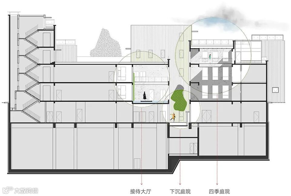 “庭”的三类垂直互动空间 ©墨臣设计