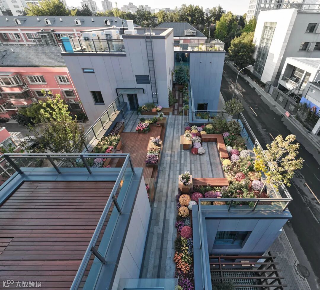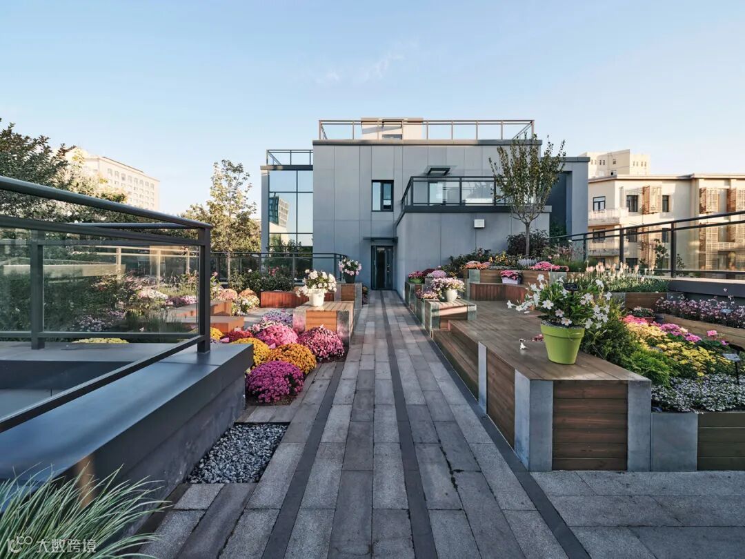 另外还设计花园露台与屋顶绿化,促进了建筑内外场景的视觉关联与互动。