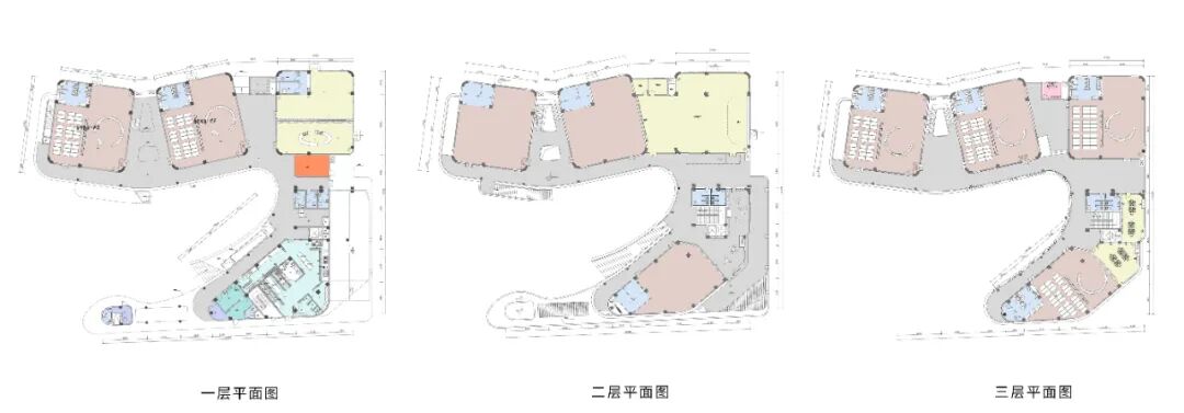 设计之初,充分考虑幼儿行为模式、场地关系、城市空间三者之间联系;首先从城市空间的宏观角度出发,打开十字路口形成开敞界面,减少建筑对沿街面的压迫感。