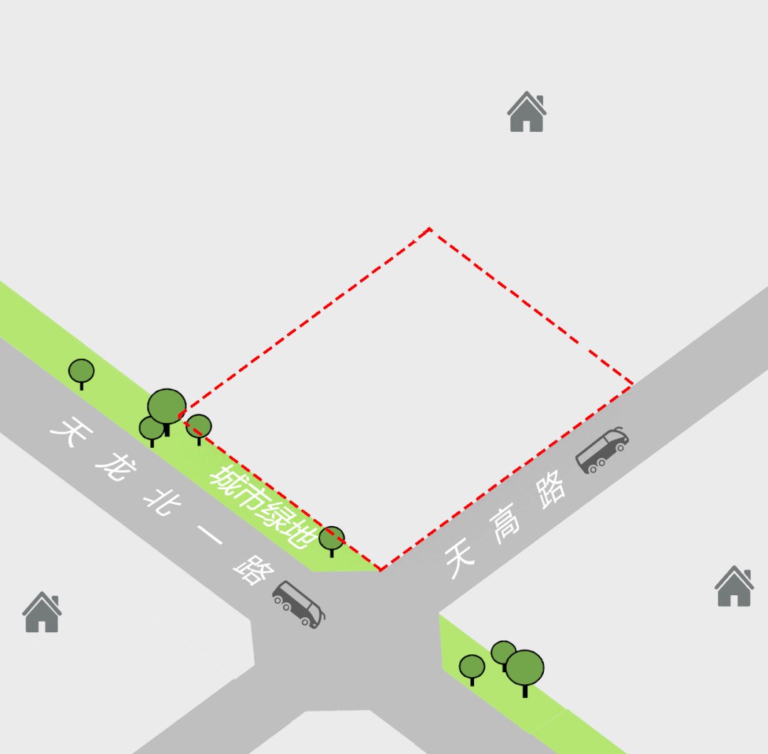 项目位于成都金牛区地铁5号线幸福桥站东侧,天高路与天龙北一路交叉路口。规划用地面积4052.07平方米,周边地块目前处于建设状态。