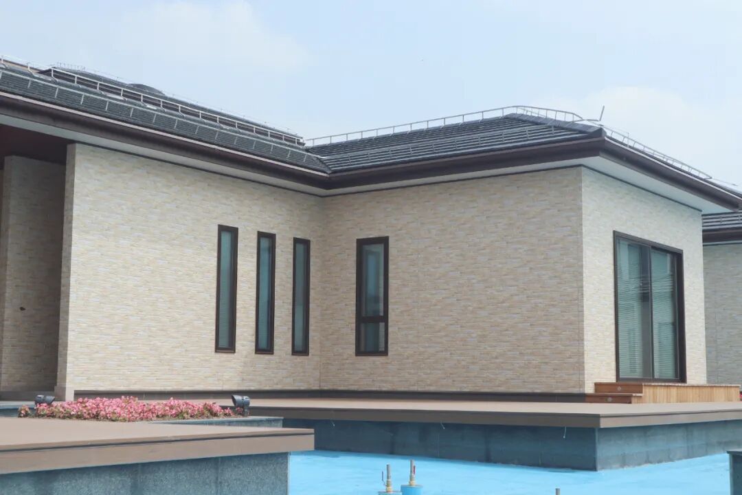 一般外壁材的住宅,在十年之后变脏非常明显,表面反碱、生锈现象严重。使用光触媒板材的住宅,十年之后洁白的墙面依旧很干净,与新建时没有区别。