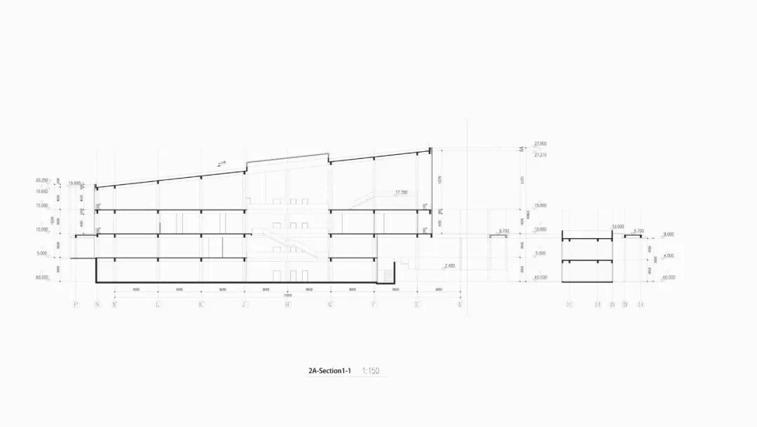 人文学院在功能上由人文部、社科部、国学部三个学科和共享的教室、阅览室组成。三个学科分别布局在三个独立的体量内,顺应山势一字排开,并通过廊道联系。