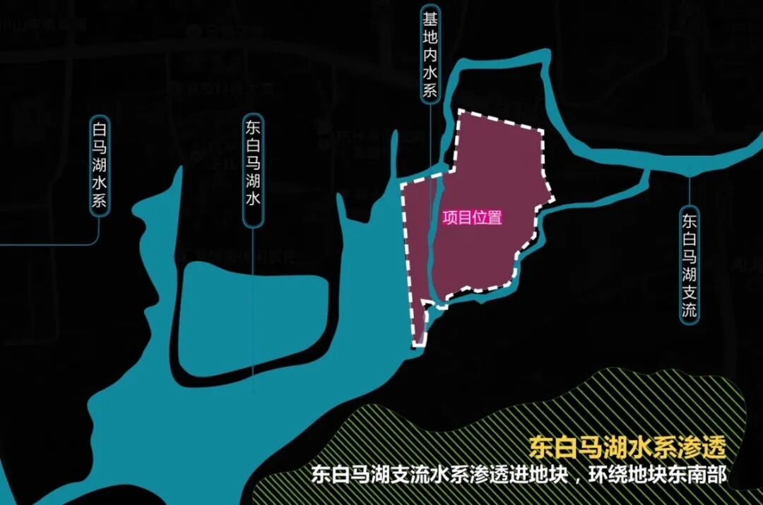 通过前期的场地调研发现:在大的城市格局上,湘湖位于项目南侧,萧山城区位于北侧,用地处于景区与城市空间的结合区域;从场地周边情况来看,项目用地西、南临水,东北临路;