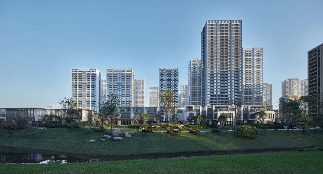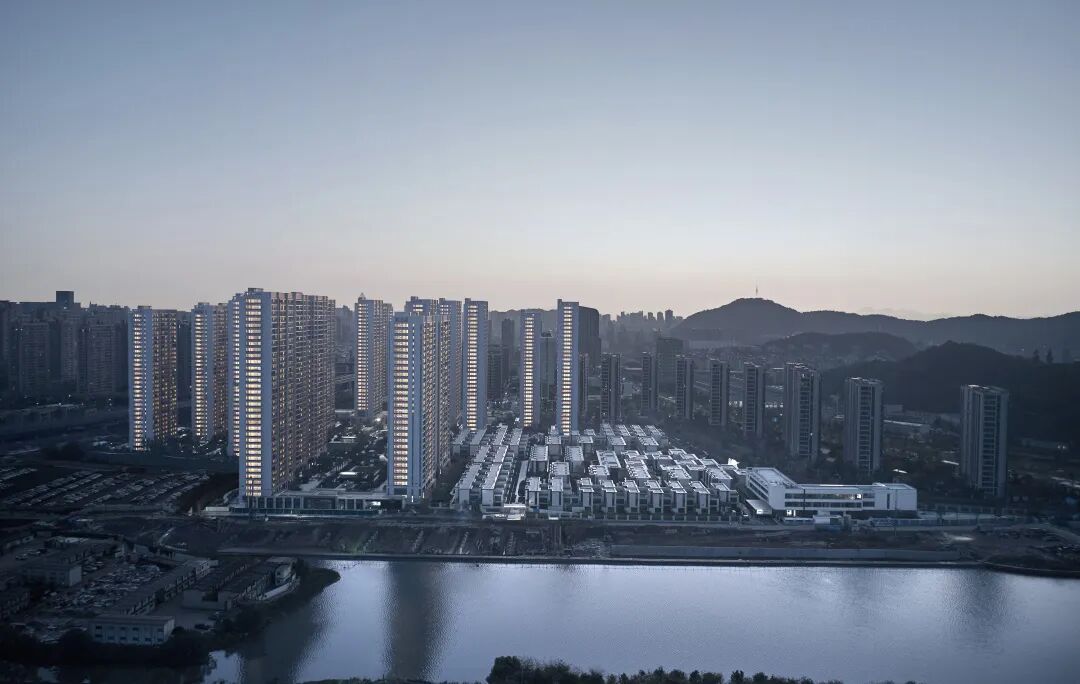 当时团队提出的故事线——“从越王城遗址先人的湖居生活,走向现代都市”成为现实。从17年底设计,18年10月示范区开放,到21年10月大区交付,历时四年,作为深耕杭州的设计团队,在整个规划和建筑设计过程中,我们对场地延续的湖居文脉的沉淀,对都市生活的思考贯穿始终。本文拟从回顾的角度对乐虹湾社区的构建和营造做一次复盘。