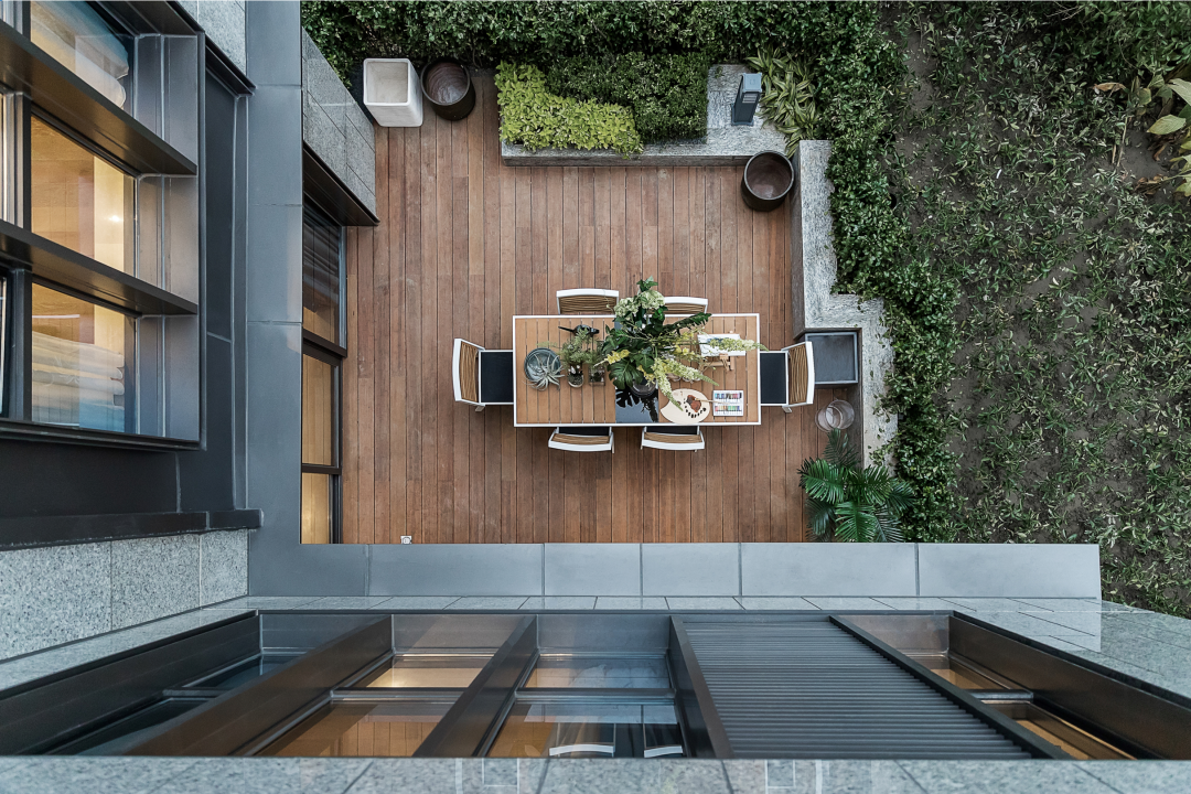 “院”是串联在“街”上的公共庭院,建筑师在规划上共设七个公共庭院,分别为:入口庭院,主景观庭院,三个联排私享庭院,一个大合私享庭院,以及一个亲水平台。