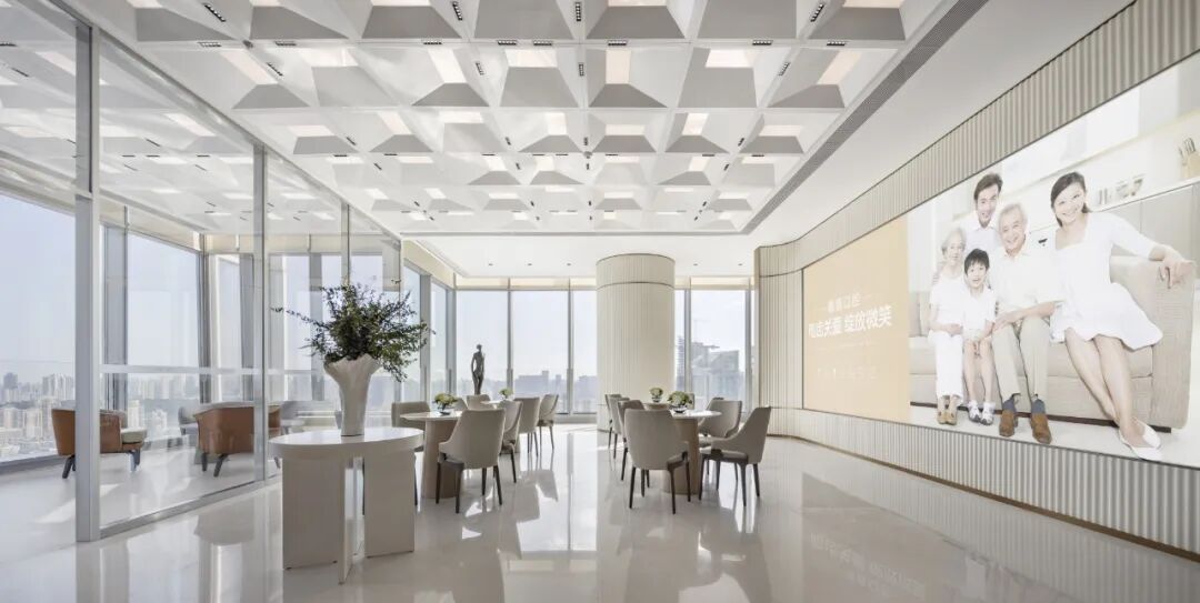 这是泰康在全国布局的第一家高端齿科诊所,总面积1300平米,内部配置了16张牙椅,针对家庭、配备了全科诊疗、牙周护理、数字种植、颜面管理、儿童专科等。同时,还配有高级别专家学术交流与保险高客宣讲区。这是泰康将口腔医学与保险更好地融合的重要一步。空间设计尝试将所有公共空间具有交流与传递泰康文化的功能。泰康口腔致力于将口腔诊疗的专业化与口腔健康管理服务品质化通过超级体验的形式,呈现给消费者。