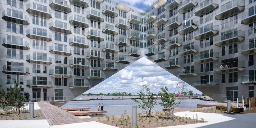 Bjarke Ingels Group 和 Barcode architects 的 Sluishuis 住宅区旨在激发和加强居民与游客之间的联系。交错的阳台创造了令人惊讶的视线和交流。穿过屋顶的公共路线,以及院子里的儿童游乐场、码头长廊和木制屋顶露台的定位,刺激了自发的相遇。