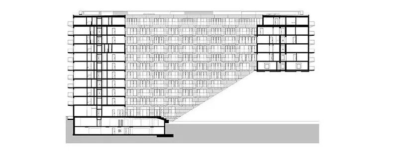 随着新揭幕的Sluishuis住宅区,Bjarke Ingels集团和Barcode Architects为阿姆斯特丹引入了442套公寓。出租和自住的房屋在整个建筑中交替出现,为不同的目标群体、收入水平和年龄类别提供空间。所有的公寓都可以通过一个中央庭院进入。在那里,悬臂和水是进入建筑的一个欢迎的门槛。由于Sluishuis的特殊形状和双切割体量,每个家庭都有最佳的视野和日光。