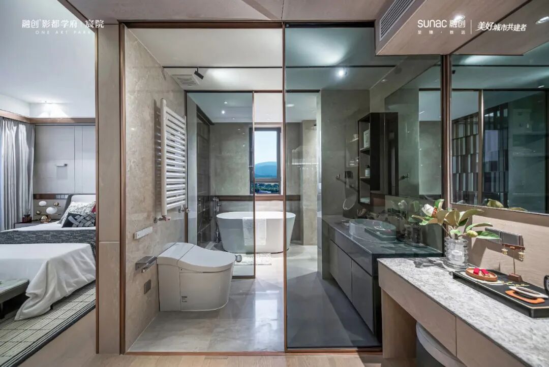项目设置现代风格和新古典风格两种精妆标准,杜拉维特、汉斯格雅等知名品牌契合居者的眼界与品味,以工法细节点滴臻贵匠心。