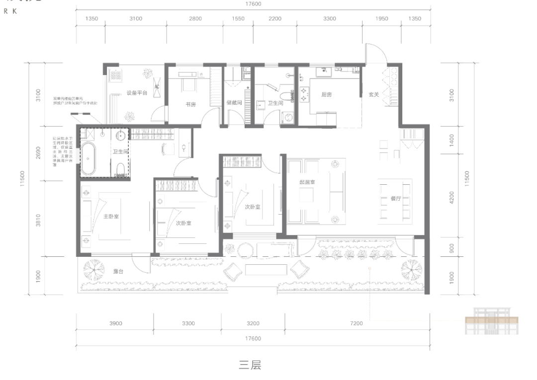 ●四个卧室在动静分离的基础上,又创造出“卧室小家化”的私密感;