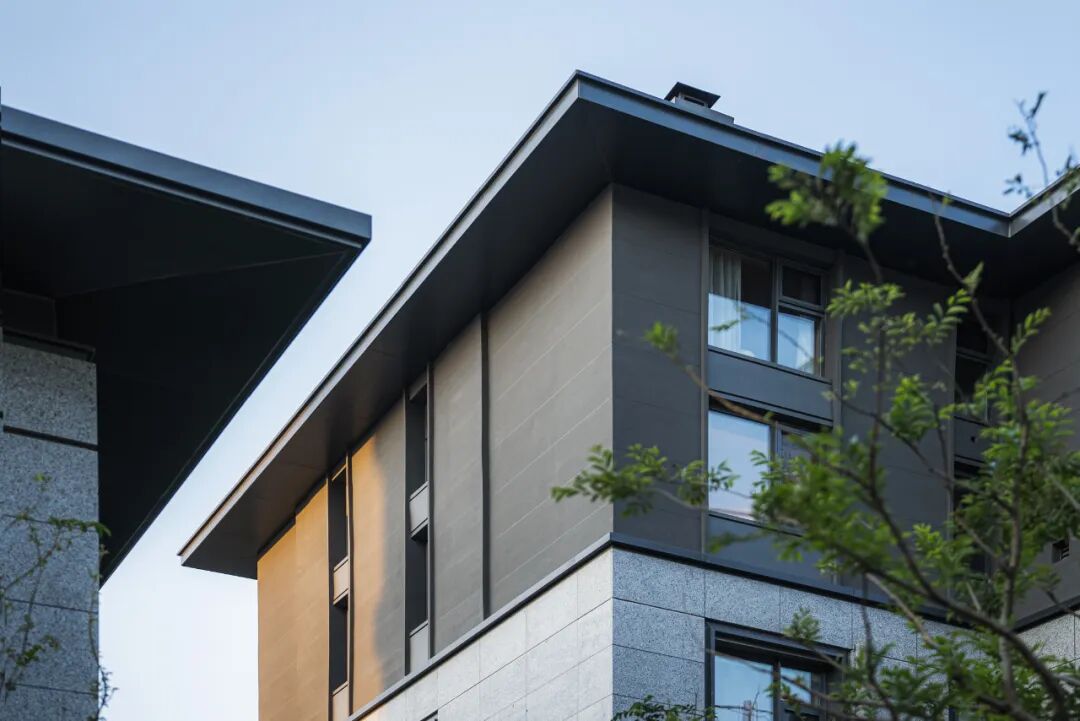 采用现代风格的高档平板瓦,历经约25轮冻融实验,耐火性防水抗渗性极佳,区别于传统石棉瓦,筒瓦等,经过多次实地打样,推敲对比后最终敲定,符合宸院匠制高标准。