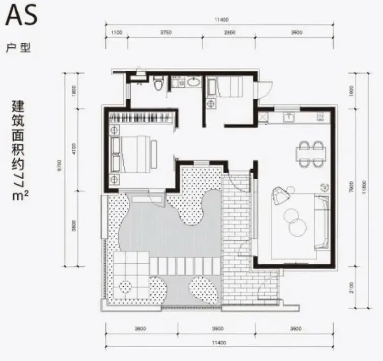 ●客餐厅一体化,更加匹配高端人群家庭的生活习惯,厨房面宽达4.5米,灵活多变;