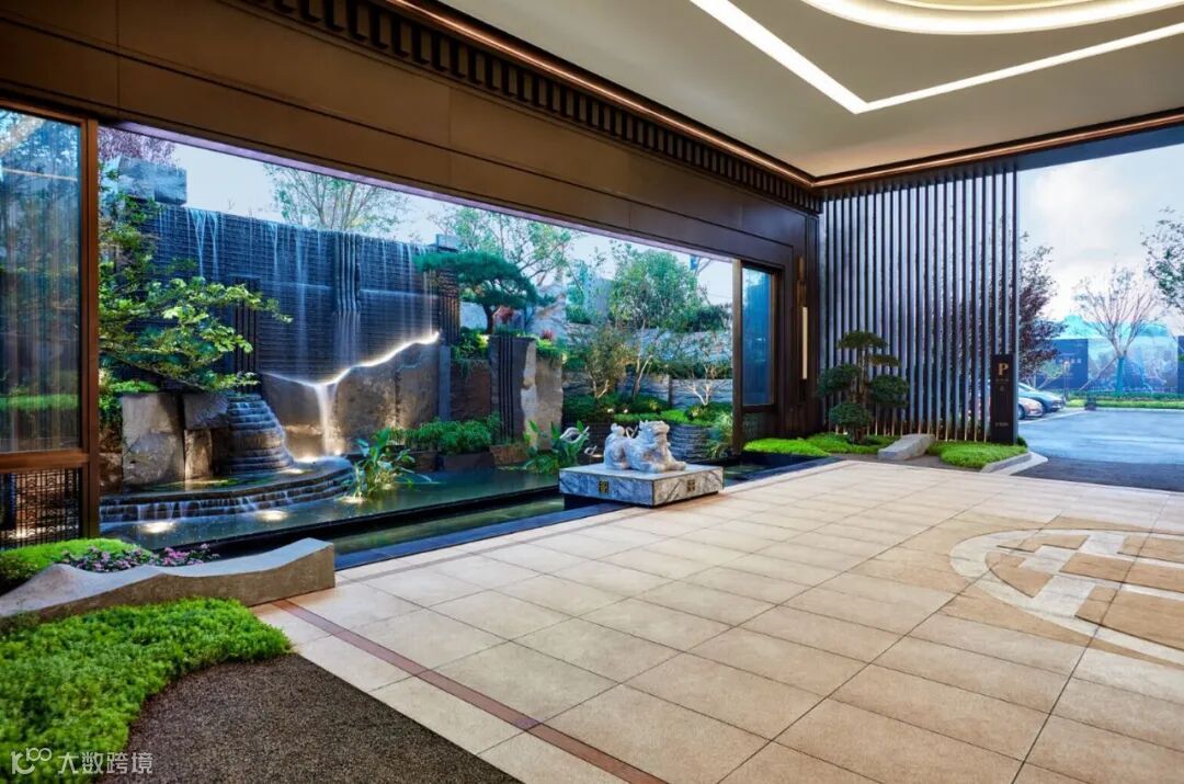 同时,会客厅作为业主的归家大堂,设计别具新意,让归家充满尊崇的仪式感。约600平米的沉浸式下沉庭院,打造有瀑布、假山、原生植被和浅池等,与精心挑选的火山岩石材相映成趣,营造出移动异景的禅意园林意境。