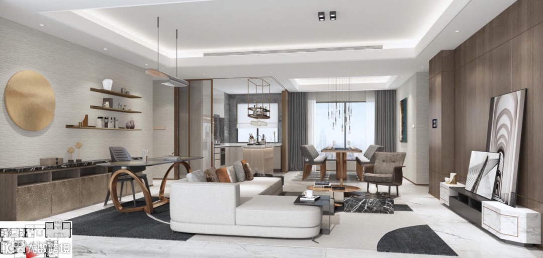 东原·印未央约168 m²户型是独立电梯入户,内外双玄关,约7m面宽的巨大方厅,整体18米南向面宽,全面向湖打开宽平的IMAX视野。