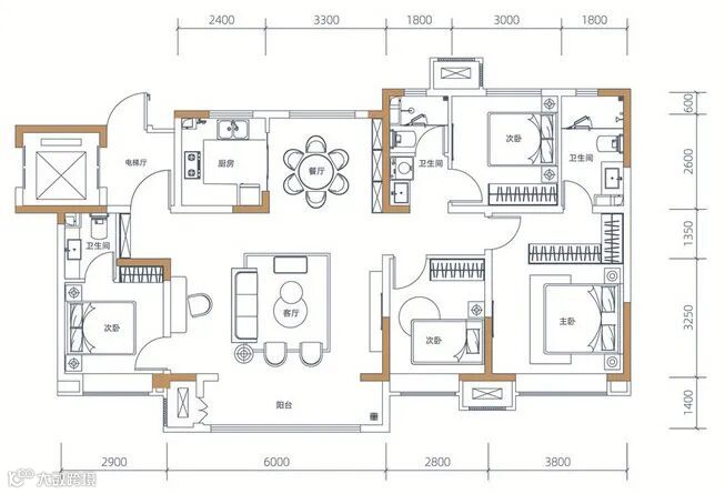 • 空间大气,能满足有孩子、与父母同住的需求;