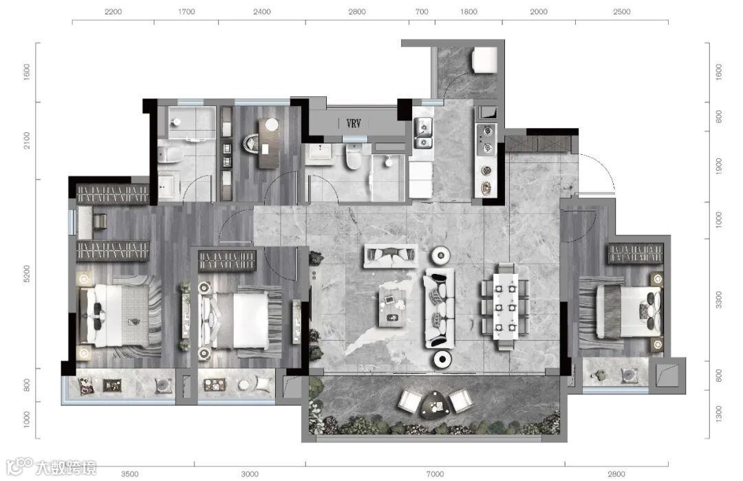 维科·水岸春晖洋房156平做到了双套房。5开间朝南+大横厅+多房多卫,完全可以把180平以上的豪宅比下去。