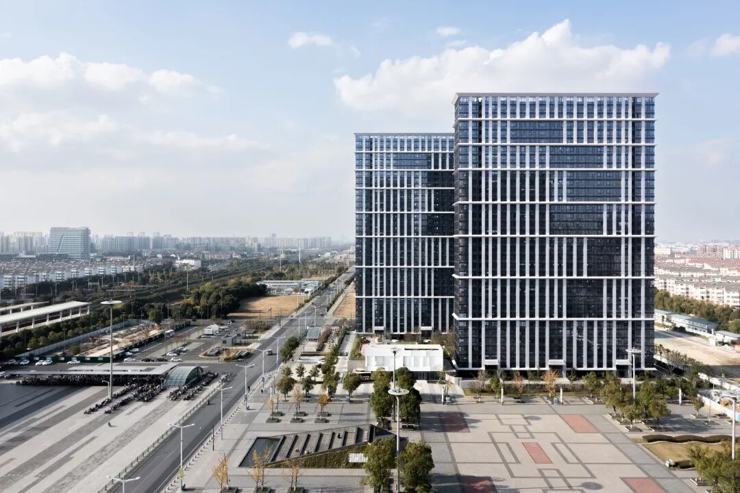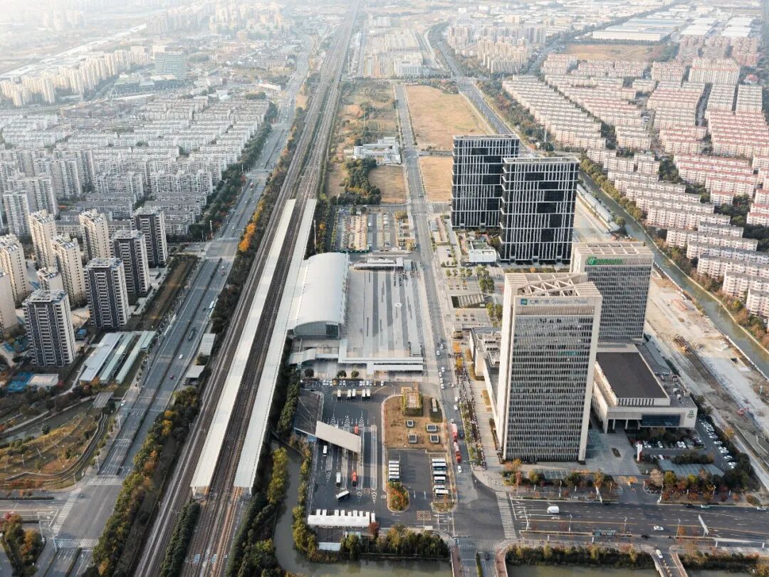 嘉骏峰项目的落成,重新塑造了站前广场的空间形态,突出高铁站为核心点,站前广场为轴线,两侧均衡平行的城市空间。现代简洁且极具识别性的立面语言给了苏州新区站一新的记忆。