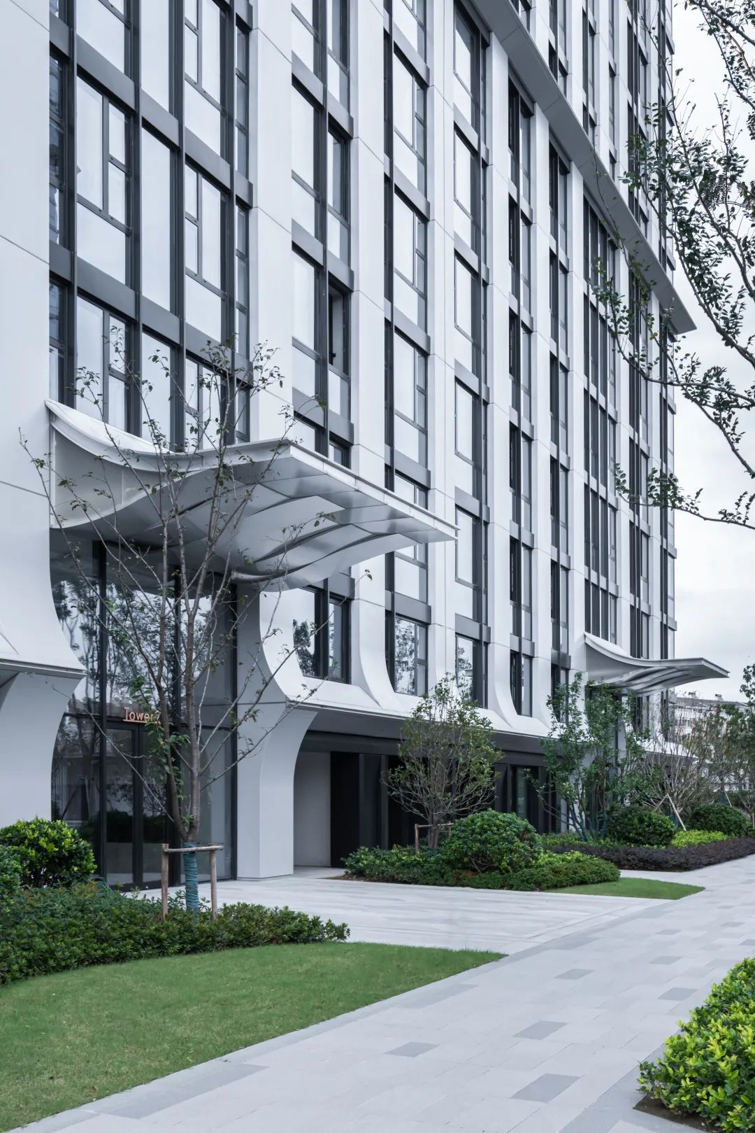 ◎重叠渐变的层间横向线条增强了建筑典雅的气质