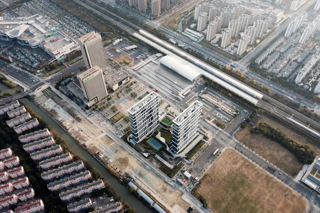 伴随着轨道交通和高铁的日益发展, 城市公共空间围绕交通枢纽向周边延申。不同物业类型的建筑围绕高铁站建设并发挥着自身的能量,方便于城市市民的工作生活。苏州高新区站已然成为了城市发展的焦点之一,如何塑造站前广场的空间界面,同时提供508个可售居住单元,是设计师需要面对的问题。
