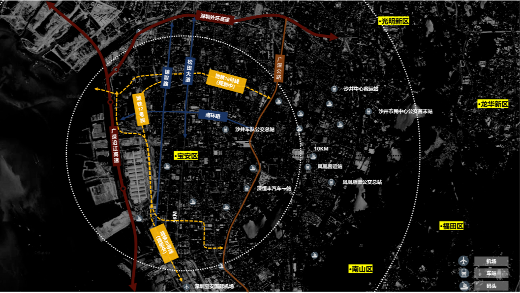 地块位于宝安区沙井街道空港新城国际会展中心北区,五公里范围内是目前最优质配套资源,包含数家中小学校、三甲医院、购物广场、医疗配套等。此外还可享受优质自然景,滨临前海、海上田园、大王山公园,交通便利,休闲配套资源齐全。