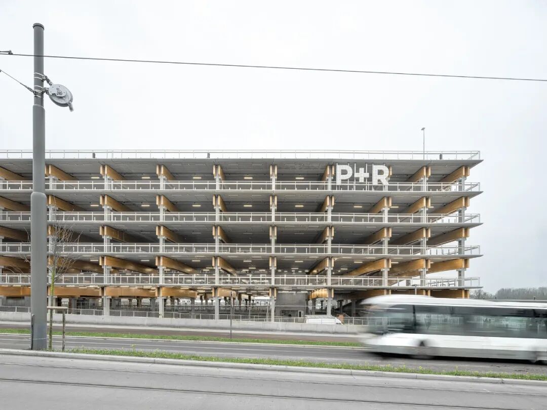 At the level of the various sites, the physical switchover between an individual (car) and the more collective traffic modes (tram, bus, and bike-share) are of crucial importance. In this sense, the Park + Ride building literally embodies the efforts to make the mobility streams that enter and exit the city of Antwerp more sustainable and collective. In other words, these buildings and the accompanying facilities can be understood as ‘transit’ environments; like airports, train stations, and metro lines, where the comfort, legibility, and safety of the transfer play a primary role.