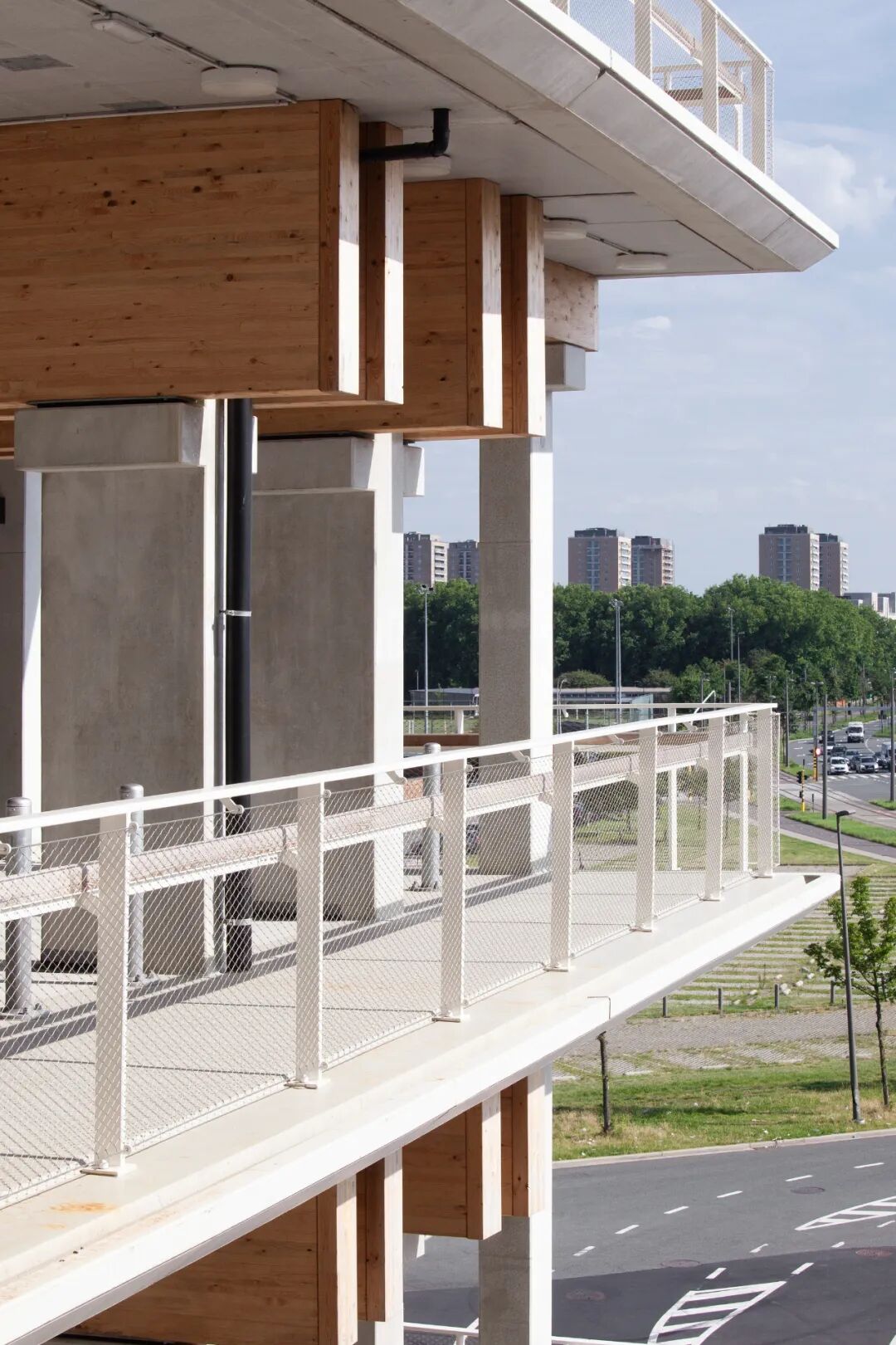 在各个站点的层面上,个人(汽车)与更集体的交通模式(电车、公共汽车和共享单车)之间的转换至关重要。从这个意义上说,Park + Ride建筑真正体现了让进出安特卫普市的交通流更可持续和更集体的努力。换句话说,这些建筑和配套设施可以被理解为“交通”环境;比如机场、火车站和地铁线路,在这些地方换乘的舒适性、易读性和安全性发挥着首要作用。