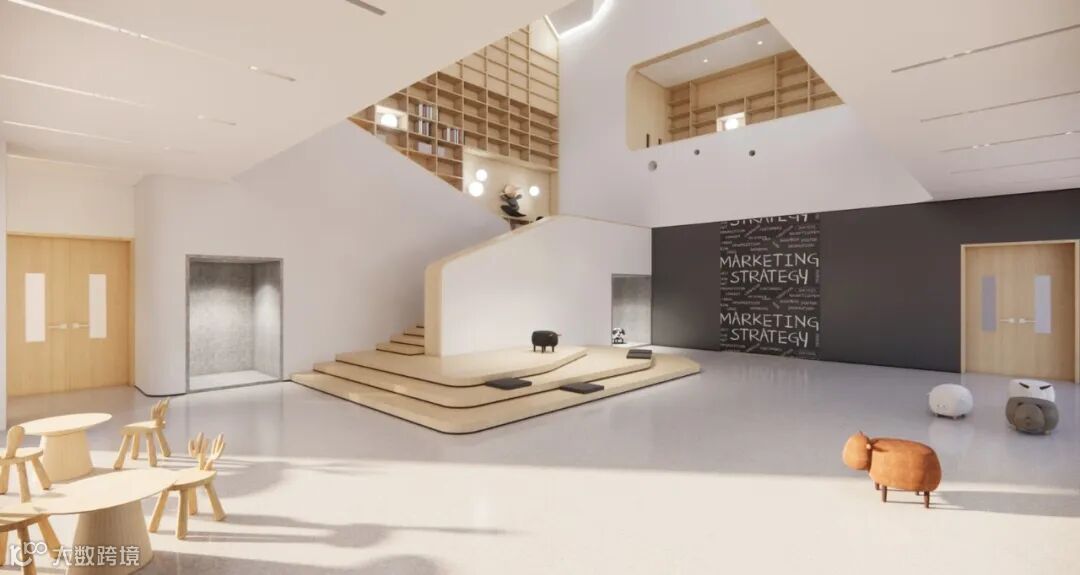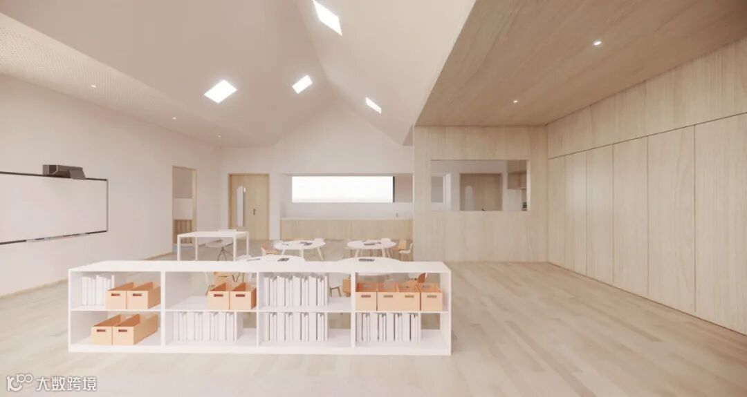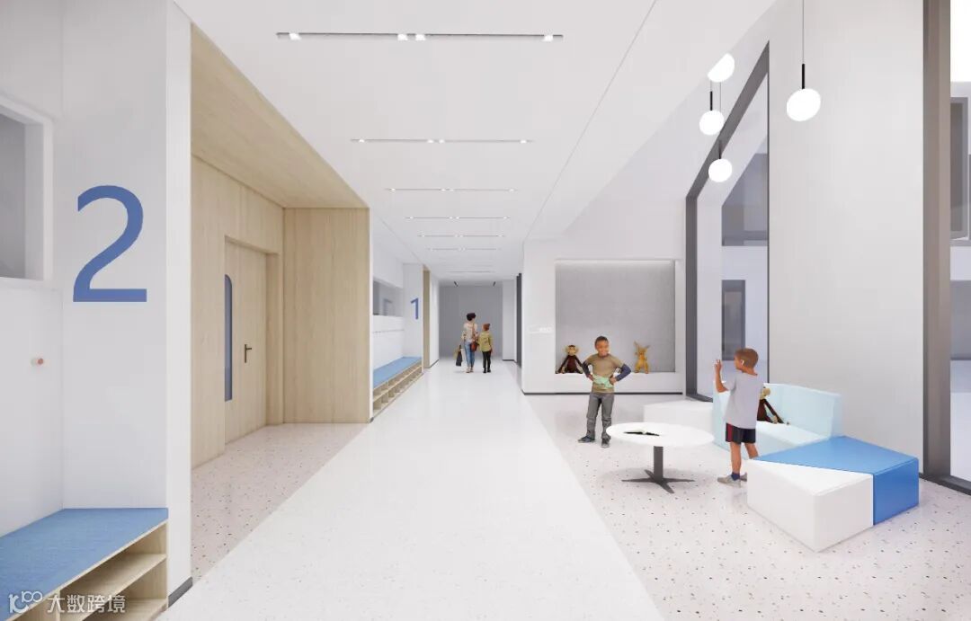 在园长办公室等办公和交通空间中,沿用了自然明亮的材质基调,同时以不同的铺地界定空间,增加了空间的通透性和逻辑性。