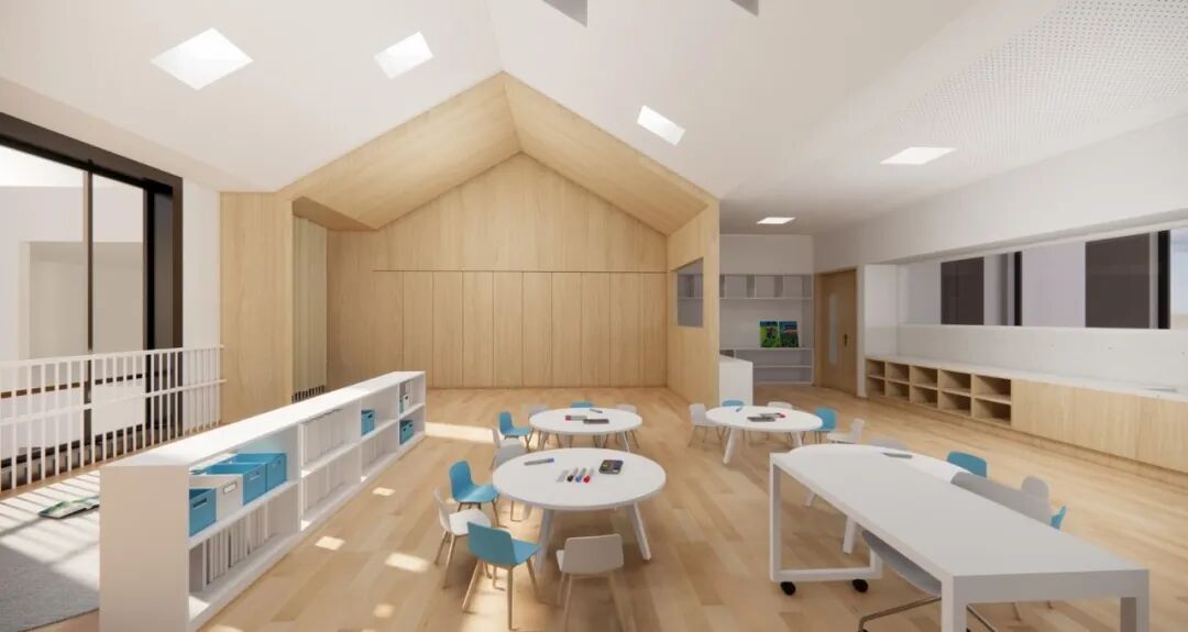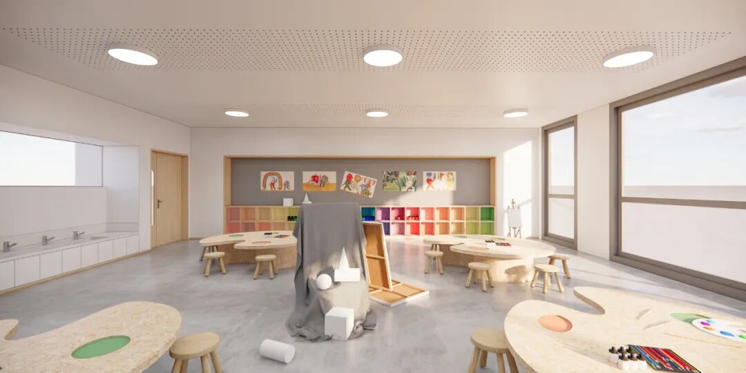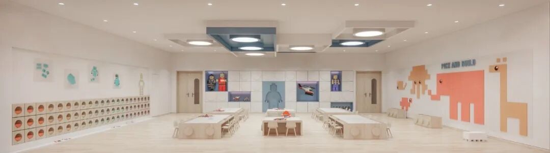 在色彩的选择上,相比于色彩明艳的幼儿园设计,我们选择了饱和度更低,也更为中性,自然的色彩,营造出静谧舒适的空间感受,也避免了孩子和老师们的视疲劳。
