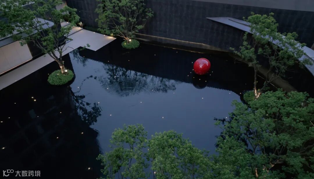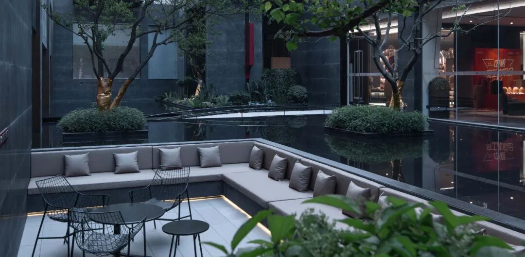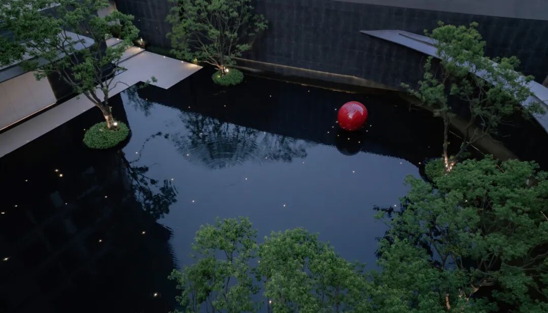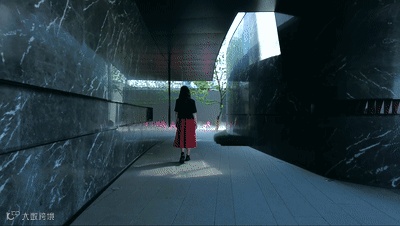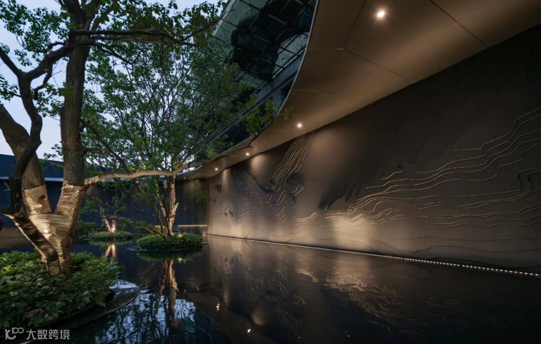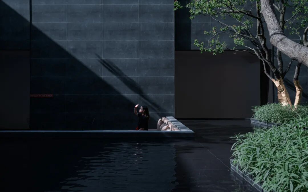 循台阶跌水而下,湖面能让人获取安静、净化的力量。转角的处理是波动后的平静,它往往预示着“新”事物的出现与体验,其所蕴含的不仅是建筑的理论基础,也与艺术的修养与审美有关。