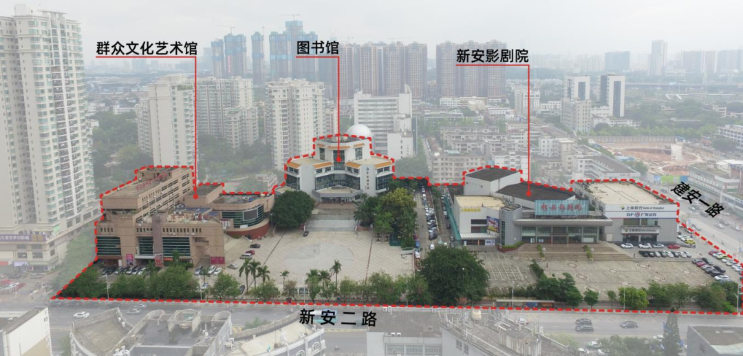随着社会经济的快速发展,人民群众对文化生活的需求日益增长,已有30年历史的老三馆场所设施逐渐落后于时代。宝安区委区政府以卓识远见对老三馆作出“保留改造、提升扩建”的英明决策,以达到延续历史文脉,留住乡愁记忆的目的。为坚定文化自信,区政府特将该项目命名为“宝安1990”。