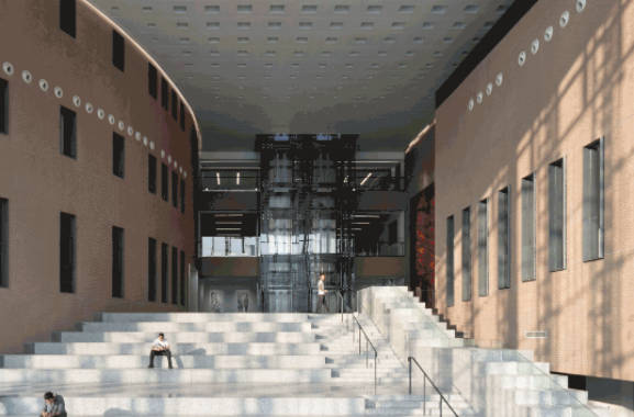 ④扩建一个全新的玻璃大厅(将室外大台阶用玻璃幕墙罩成室内阶梯艺廊);