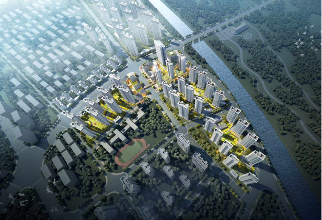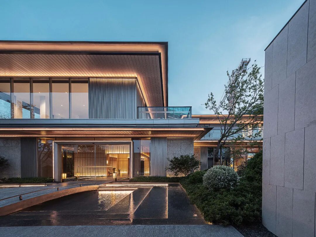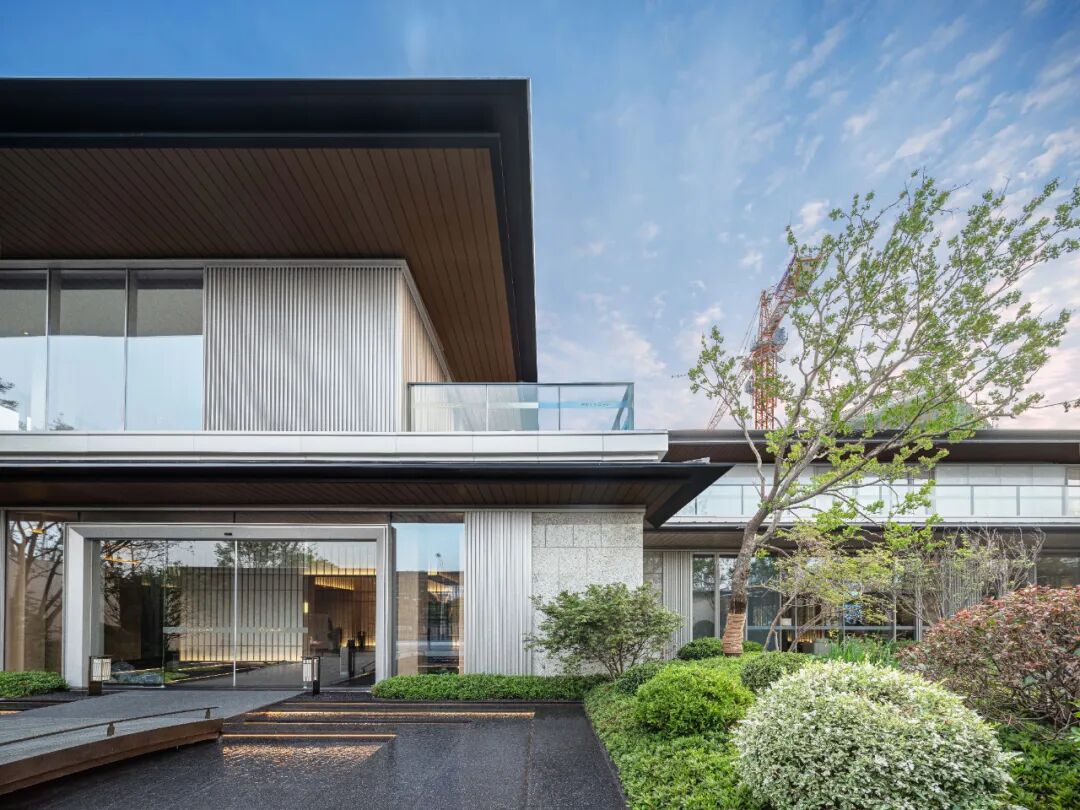 在自然与城市之间,由一段水岸,延展出滨河的生活传承。项目整体的布局采用“前庭后院”式的规划逻辑,借用中国古典园林一步一景,步移景异的造园手法,逐步展开空间序列。外立面的设计中,提取淮安文化因子,融入现代居住理念,以高档石材的稳重与大面积玻璃窗墙的时尚感,以铝镁锰板代替瓦屋面呈现出历史与现代生活交融的美感。