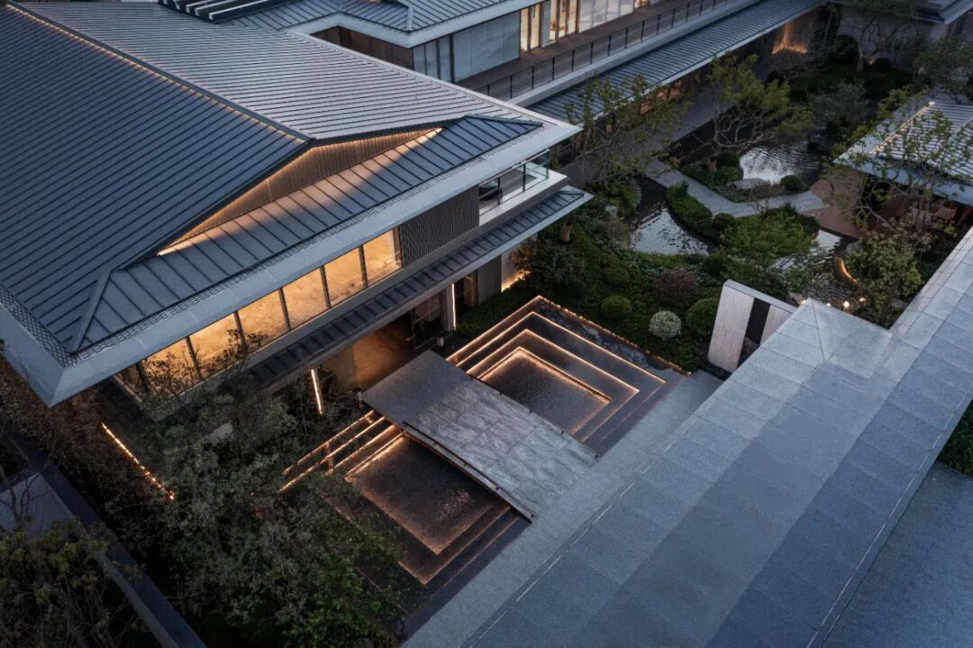 屋面选用的远山黛色铝镁锰板代替传统的瓦屋面,与二层退台的灰空间相辅相成,使人在庭院意趣中感受建筑空间的纯粹与精致。