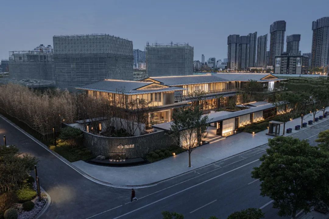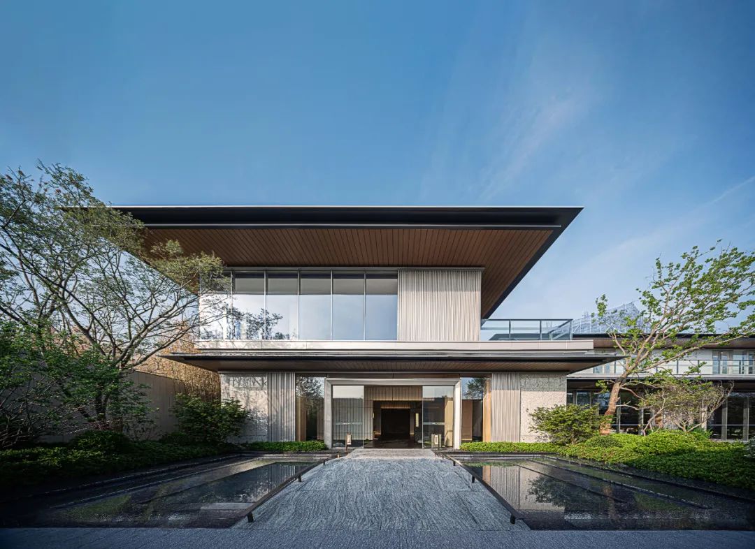 以宋式书院美学为基调,入院空间不是一目了然,而是如同画卷一般,随着路径的深入徐徐展开,起承转合,有门,有廊,有院,有堂。