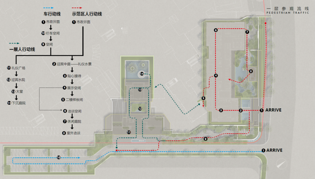 示范区和商业街区的功能要求,决定了建筑简洁高效的平面形态。设计师在布局营造之中依据展示流线布置空间序列,并且充分考虑以后的使用功能。