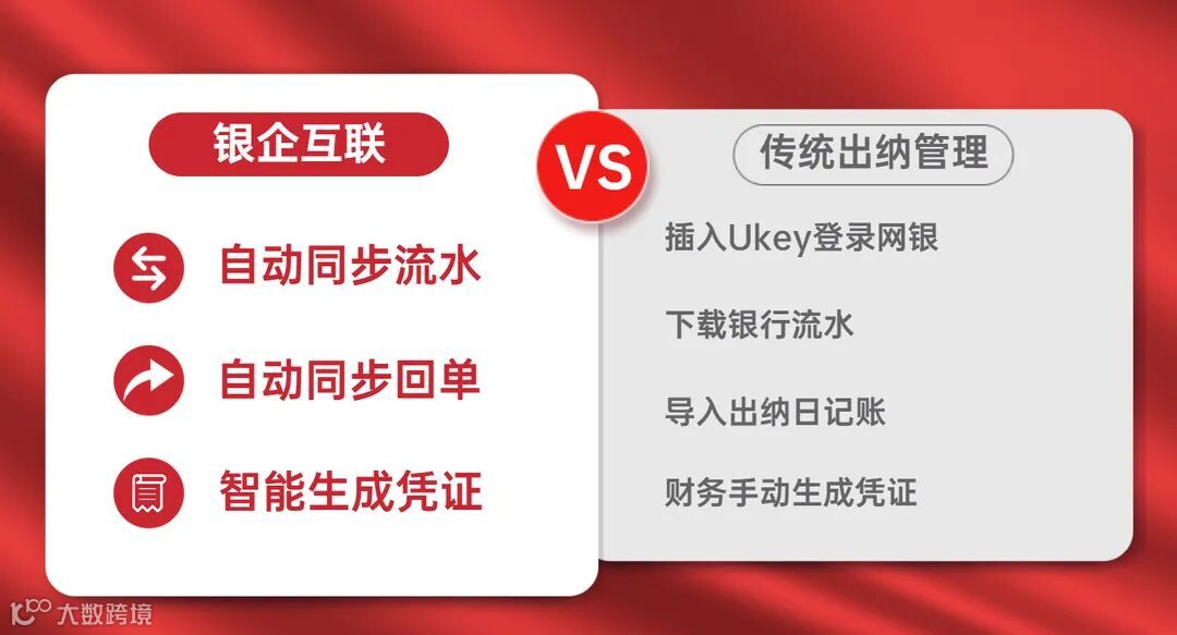 还有更高效的银企互联功能,银行账户数据实时查询、高效处理,自动同步流水、一键生成凭证,减少人为工作量,节省人力成本!