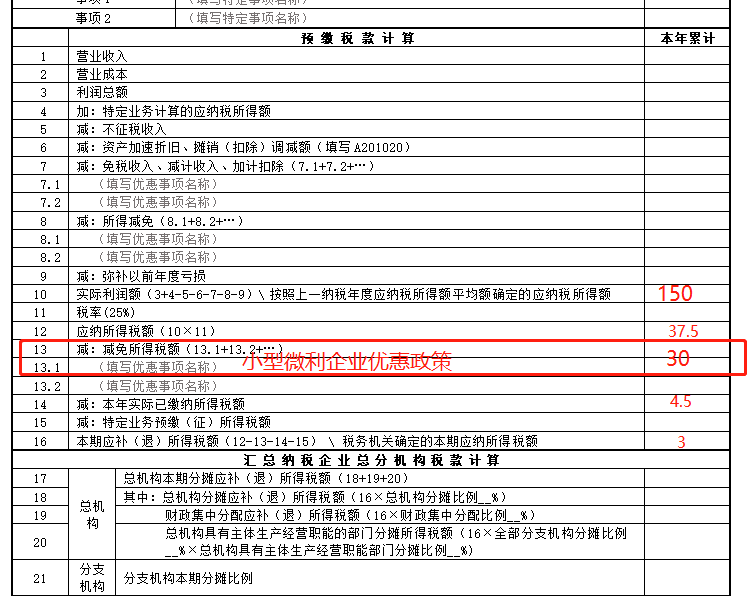 假设第2季度预缴企业所得税时,还符合小型微利企业的标准,相应的累计应纳税所得额为150万元,那么A企业第二季度累计: