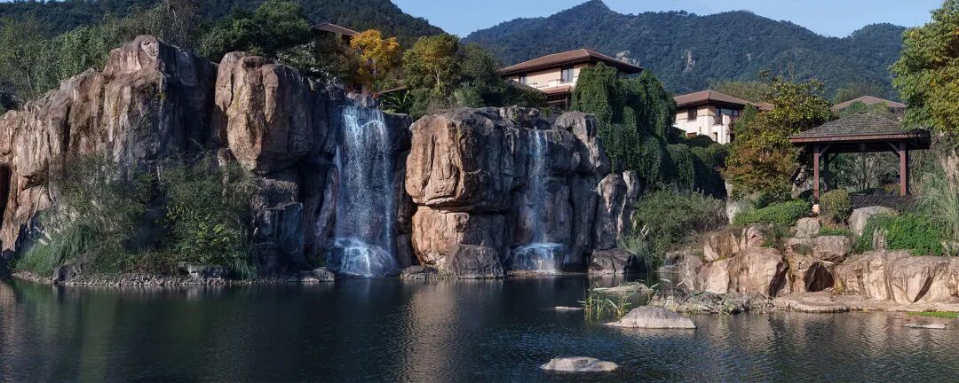 山体北高南低,由北自南山势渐缓,与远处连绵起伏的群山一起,形成了丰富的天际线,山形本就秀丽;从五期潭瀑开始,溪涧沿路缓缓流淌,至汇泉湖收尾,与脚下的富春江一同构成公望的水脉。自三期开始,到现有的最后一个组团,溪涧自顶峰缓缓流淌,山势虽逐渐变缓,水形却愈加开阔。