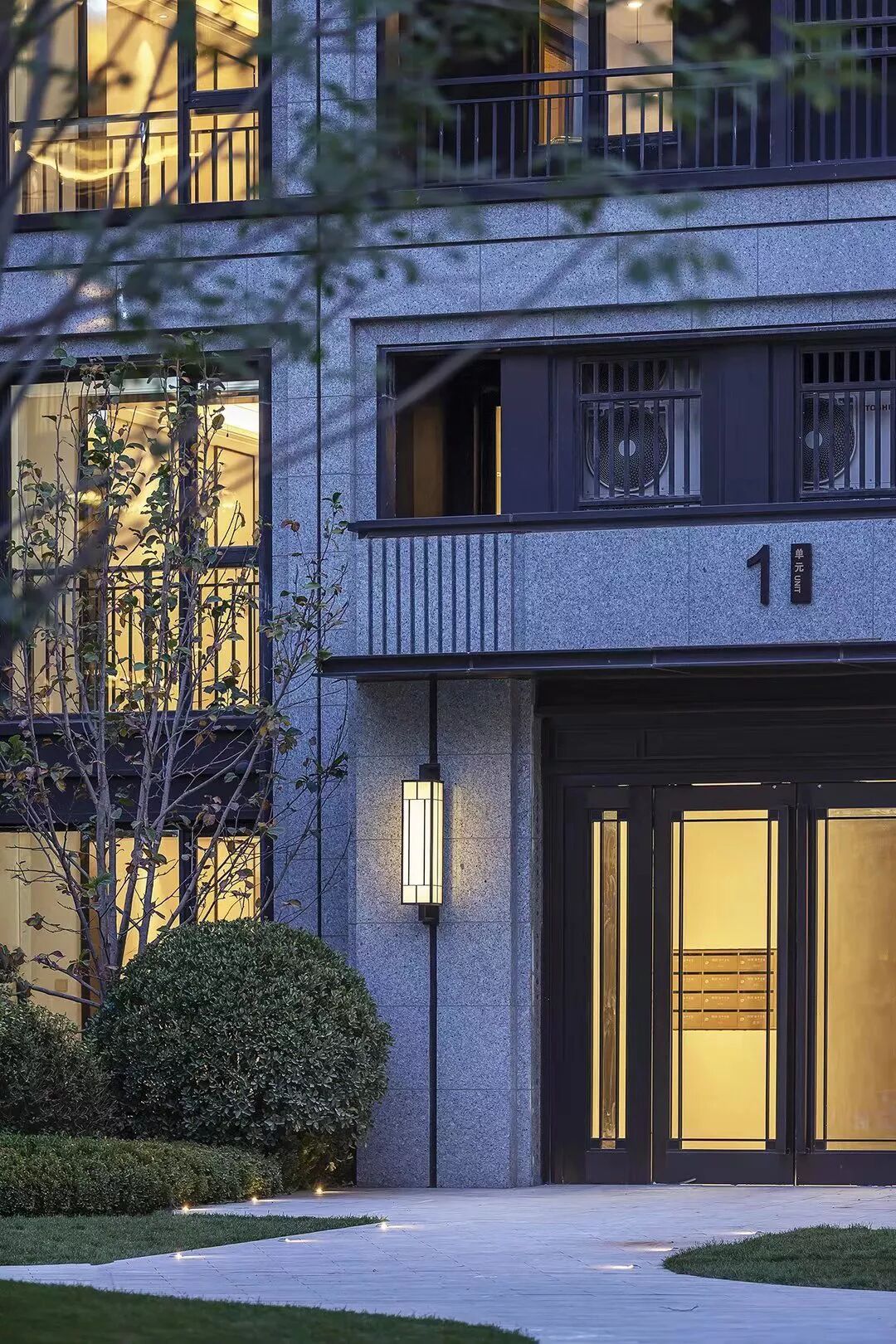 单元门风格一般与整体建筑风格保持一致,常见的有:现代风格、新中式风格、新古典风格等。