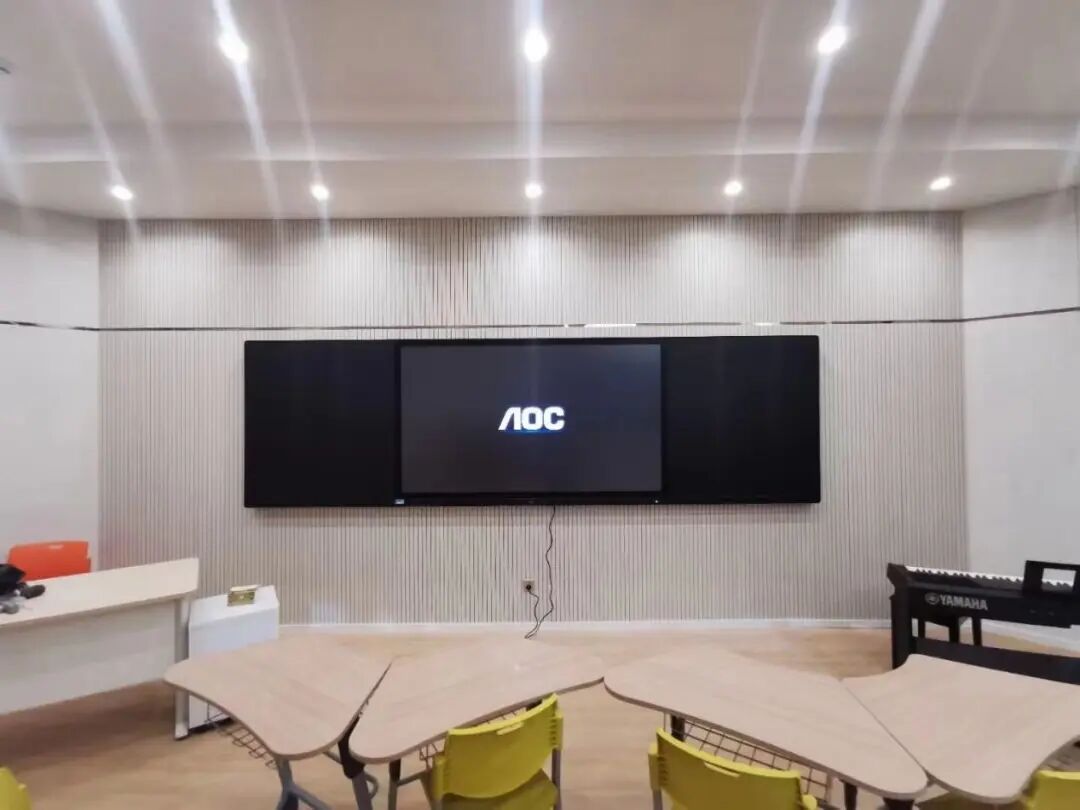 此次阜阳理工学校即采用AOC旗下智慧黑板,用以打造智慧实训室,为学生们带来更新颖、更趣味、更高效的学习体验!相较于传统黑板,AOC智慧黑板采用正面三合一拼接安装,两边副板不仅支持普通粉笔、无尘粉笔及各种水笔正常板书,主屏更能提供高清显示及互动触控,实现灵活教学。