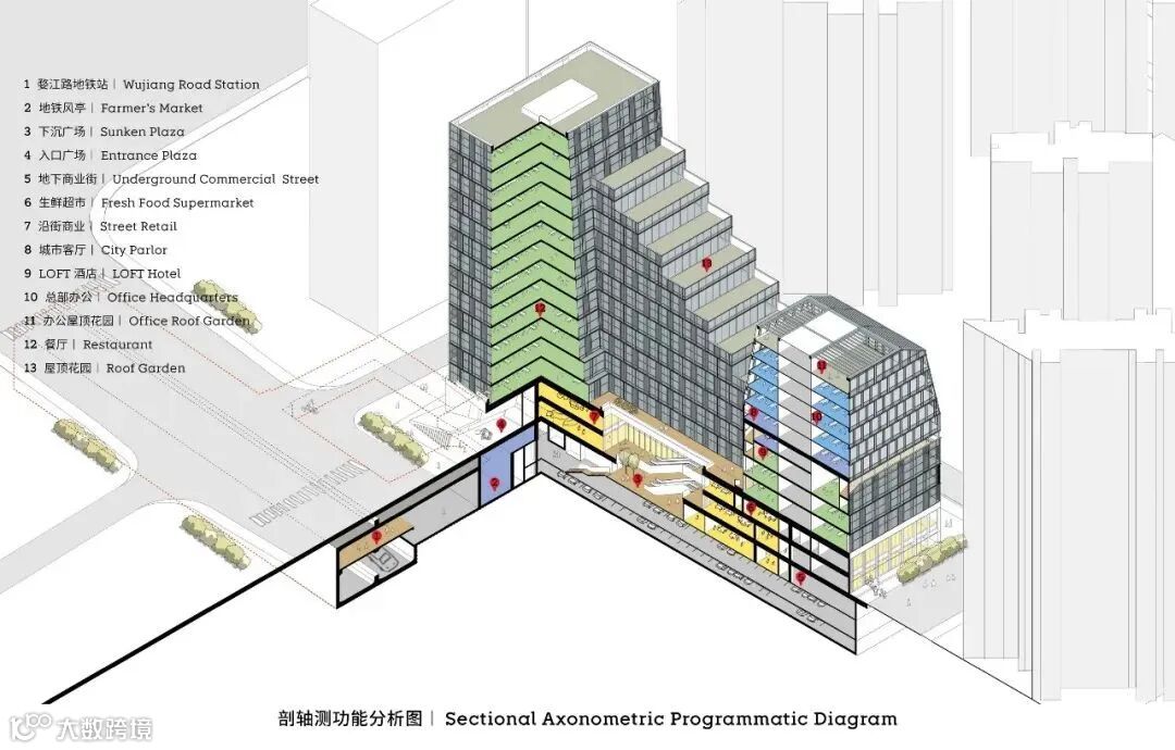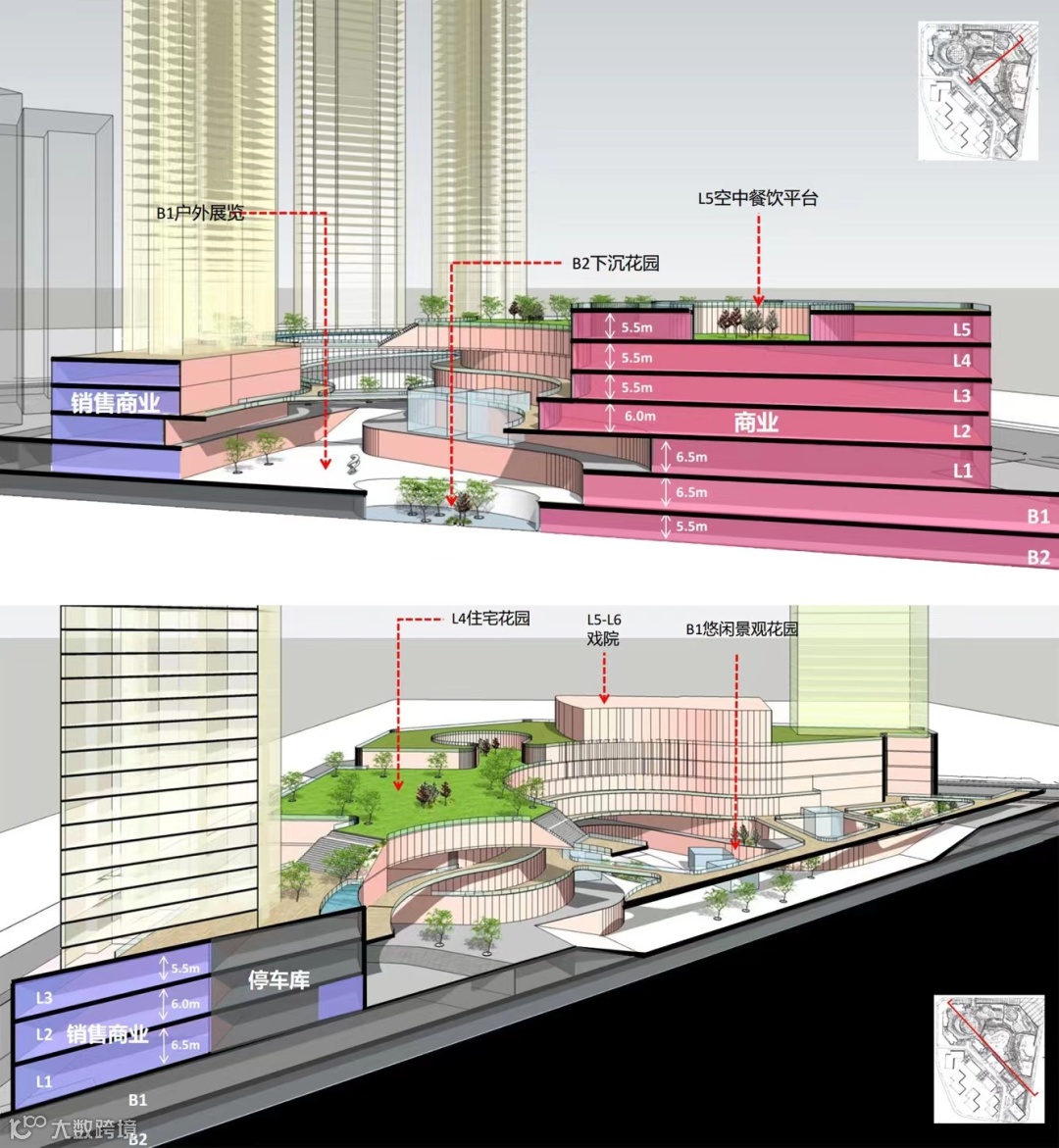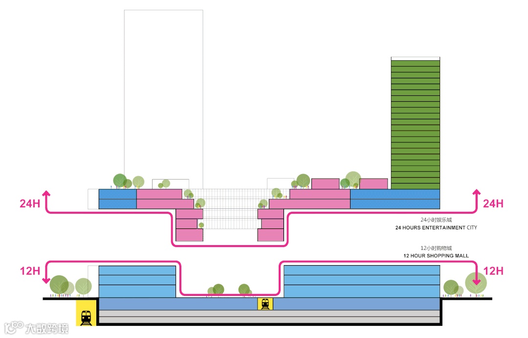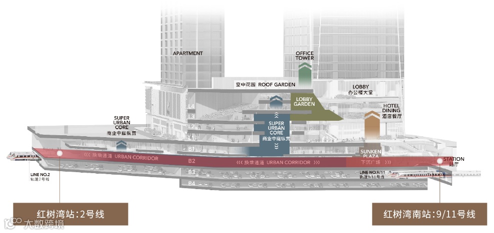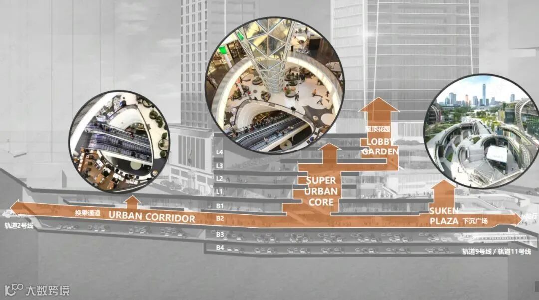 一重悬浮:1层地铁接驳口,负2层商业无缝链接内部;