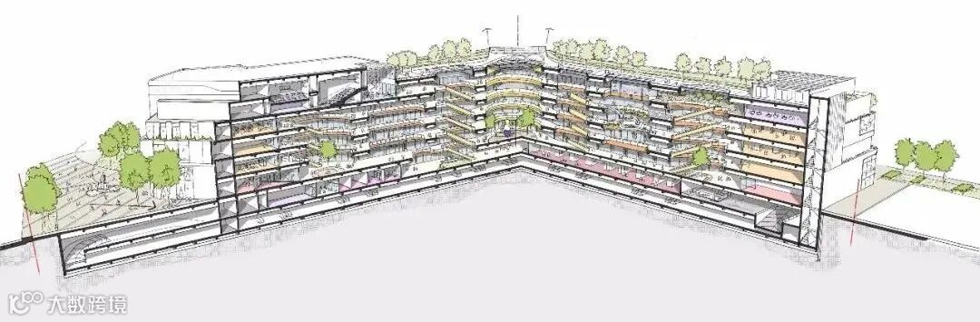 整个SIC超级总部中心将充分融入区域的交通系统,与周边的空间实现无缝衔接;并采用了多楼层抵达的设计,进而提高多种运输系统的可达性;还引入「城市客厅」这一概念,优化客流的立体步行系统。