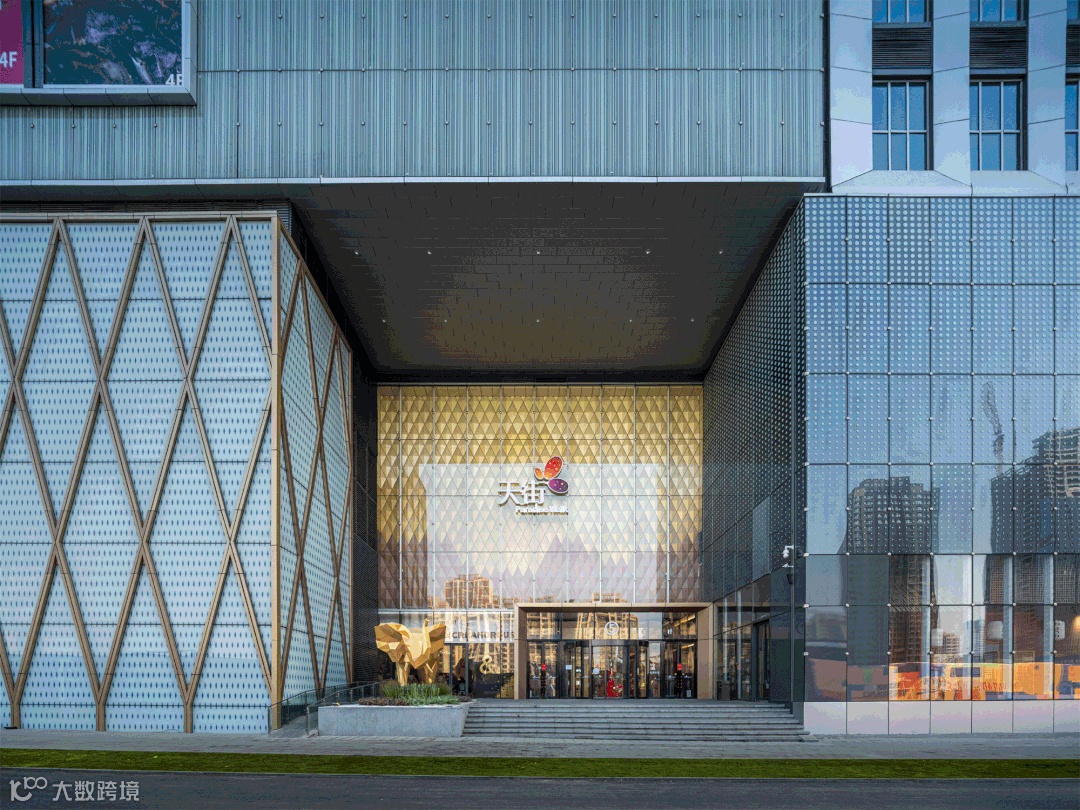 银色的铝合金外观结构,优雅地缠绕在像珠宝一样璀璨夺目的玻璃体城市之窗上,以现代视角重新诠释了当地的传统文化遗产——蜀锦。