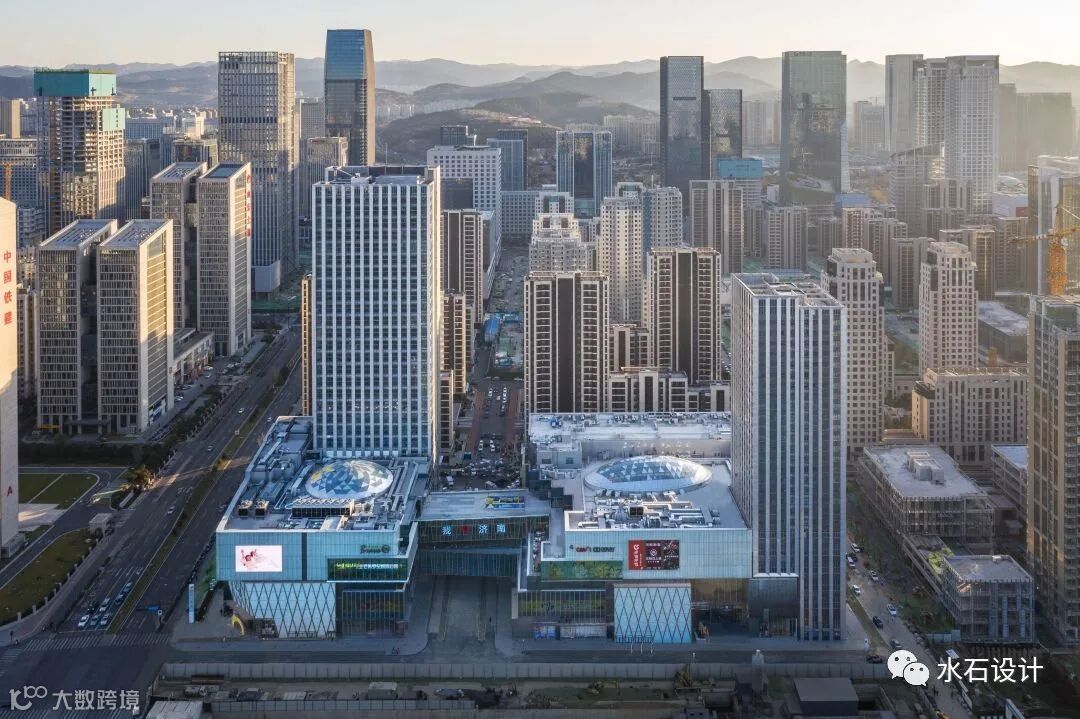 比如水石设计设计的济南龙湖CBD奥体天街不同的体块元素组合营造了层次丰富的、多元时尚的商业氛围,同时也加强了建筑立面的虚实对比,使建筑跃动起来,充满年轻的活力与气息,丰富了城市的界面景观。