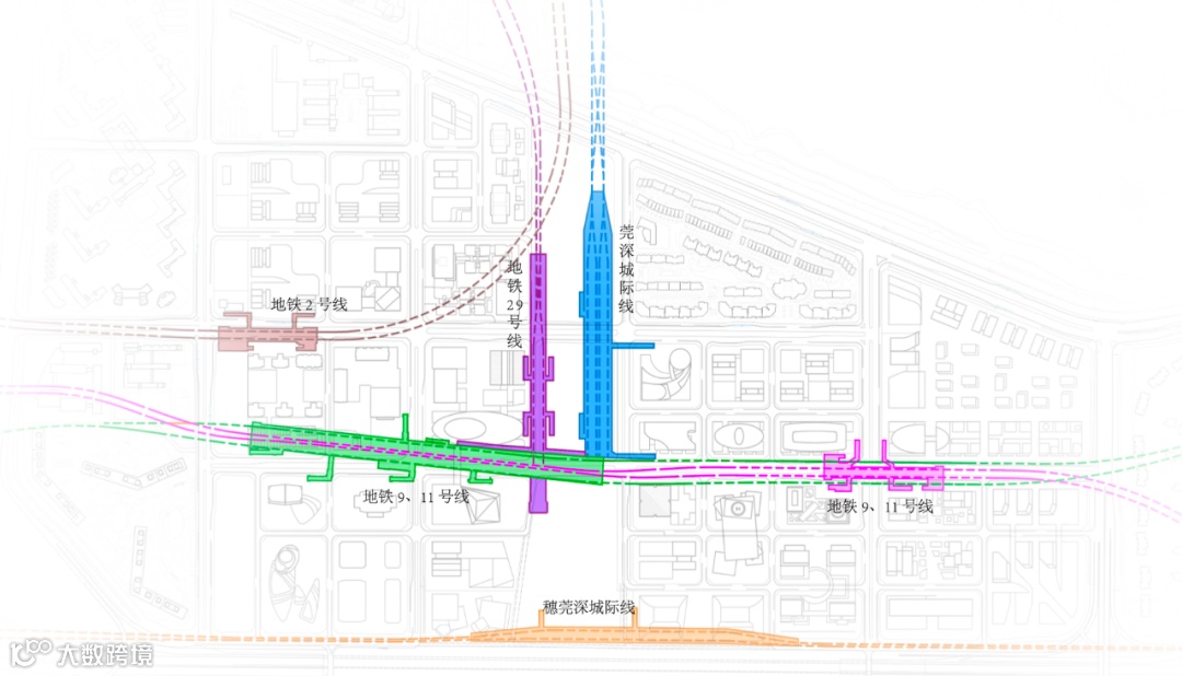 地铁2号线、9号线、11号线都在此处交汇,未来还将引入轨道29号线、深莞城际及穗莞深城际线,进而形成「六轨六站」的综合交通枢纽。除此之外,项目还可通过便捷的轨道交通快速直达深圳宝安国际机场、广州白云国际机场,甚至是中国香港国际机场。