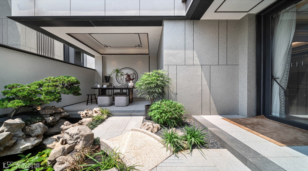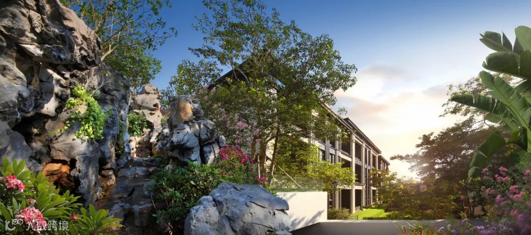 该项目从城市界面到售楼部后场,以“山”与“石”作为设计符号,缔造了人与自然共生的八大生活空间。同时,山石意向的融入,一定程度上也消解了景观延期介入而与场地造成的隔阂,使空间风格意向升华,最终完美呈现了项目的预期效果。