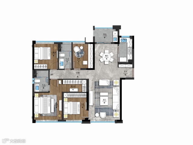 ▲中海·环东时代 111㎡四室两厅两卫实景图