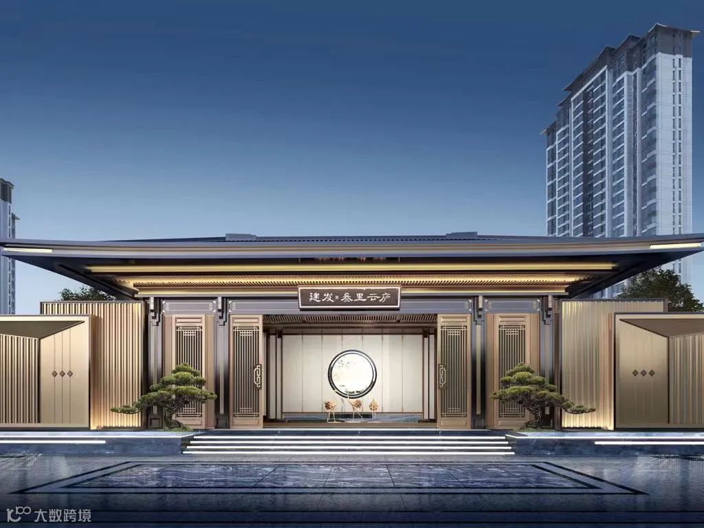 整个建筑外观也是采用目前非常高端大气的中式盛唐国风来打造,以轻盈的铝板作为挑檐,立面格局稳重大气,又显得灵动飘逸,配以格栅,步步锦、回字纹、万字纹,不仅代表着美好的寓意而且还能使建筑整体传达出唐朝文化的底蕴。