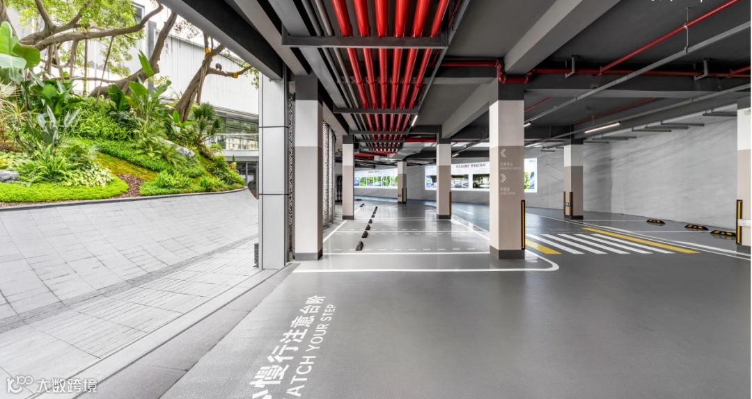 地下车库的设计,墙面选择采用当下流行的清新色调,让整个车库显得清新明亮,舒适雅致。